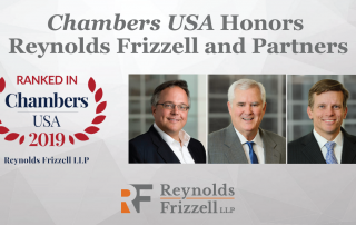 Reynolds Frizzell LLP has once again been recognized by Chambers USA for 2019 in the Texas, Litigation: General Commercial category. The firm has consecutively received this prestigious honor each year since its founding. Partners [...]