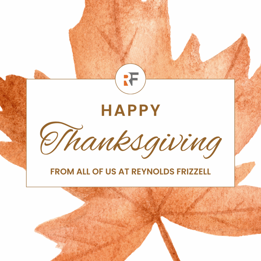 From all of us Reynolds Frizzell, wishing you and yours a wonderful Thanksgiving and holiday season.