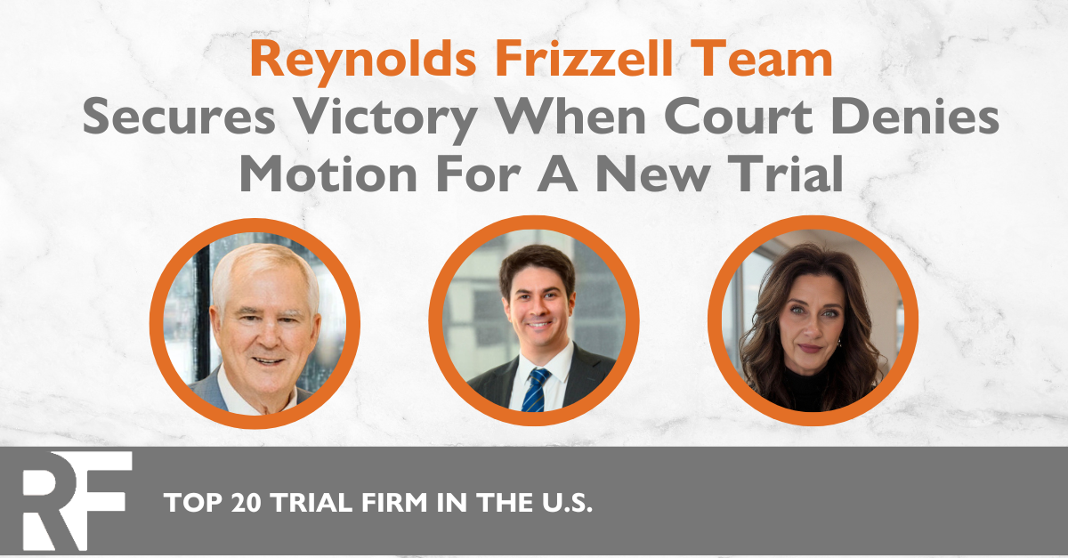 Congratulations to Chris, Adi, and Shellee on this successful result. Learn more about our talented team of trial attorneys: https://reynoldsfrizzell.com/attorneys/